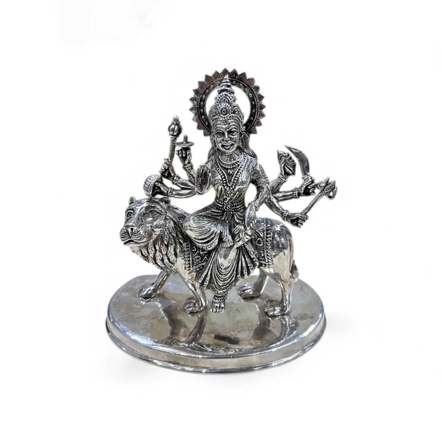 Design: Durga Mata seated on her lion (Simhavahini) with detailed weapons & adornments
