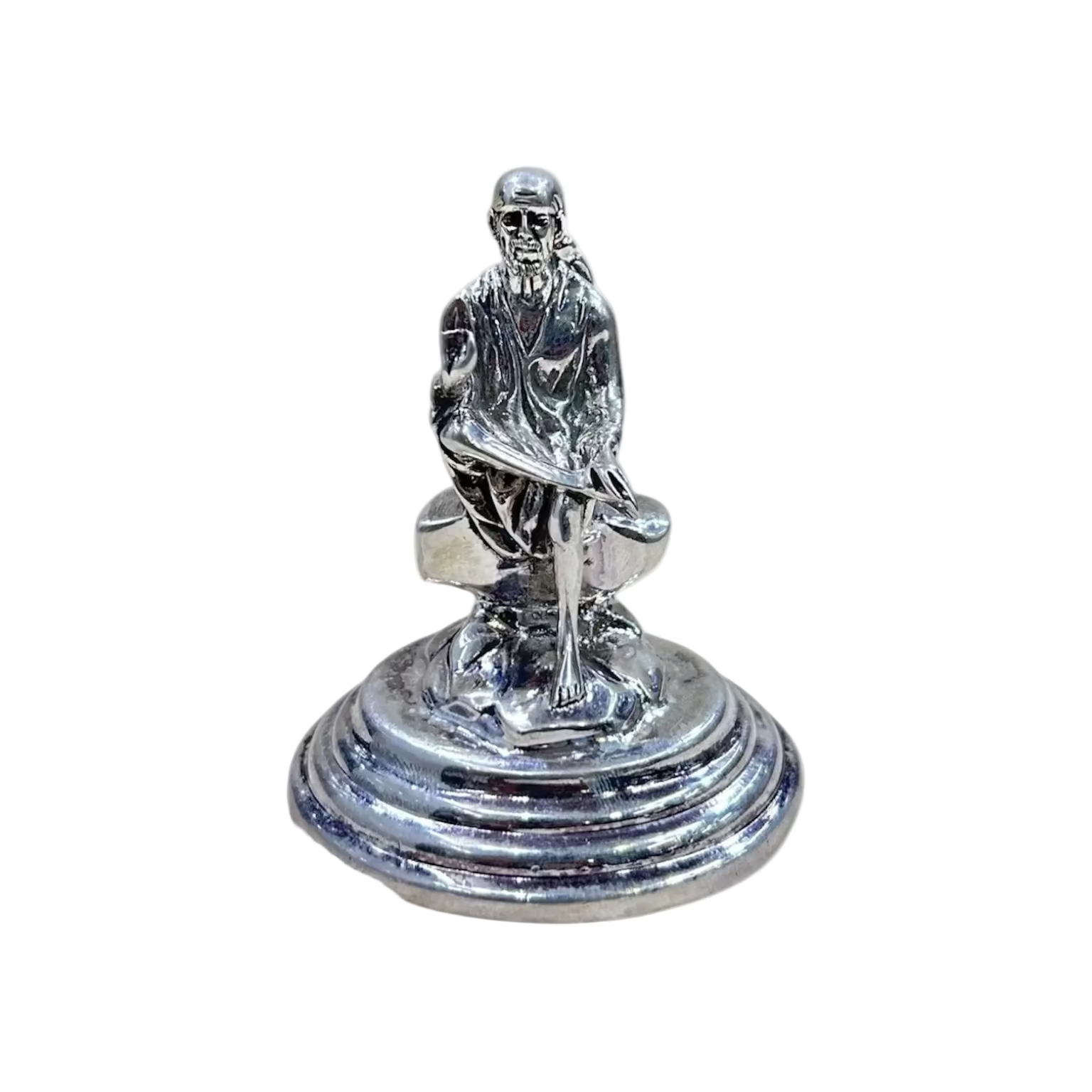 With a radiant silver shine and premium craftsmanship, this Sai Baba idol is perfect for home temples, meditation spaces, office desks, or gifting during auspicious occasions.